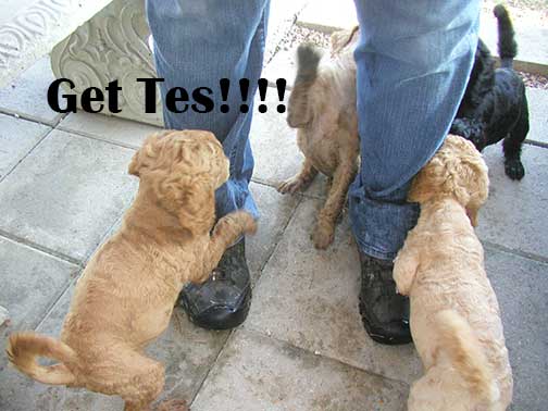 Large Standard Poodles G x D, Tes is so interested to see how we grow with Dash pups. She sees us to grow TALL and Lean as adults, like Momma and Poppa. Weight and bone mass won't be anything like grandma Magic, yet TALL & Lean is a definite factor of Geo and Dash!