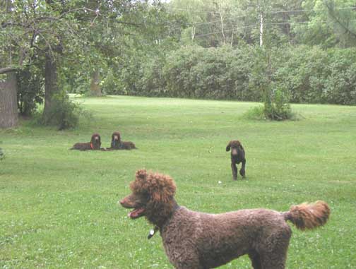 We love playing in the parks while Tes mows them. My brothers Steve and James are still here waiting for their owners coming form Germany and Iraq.