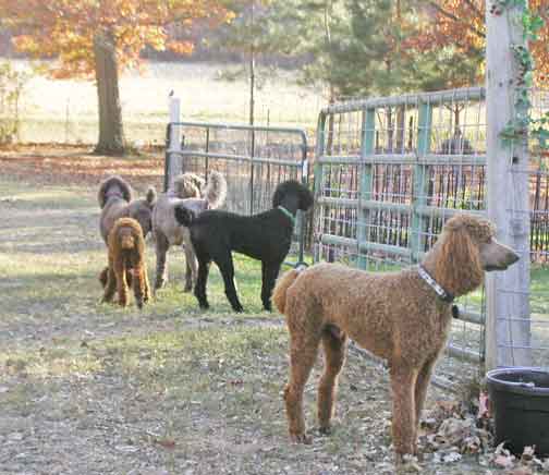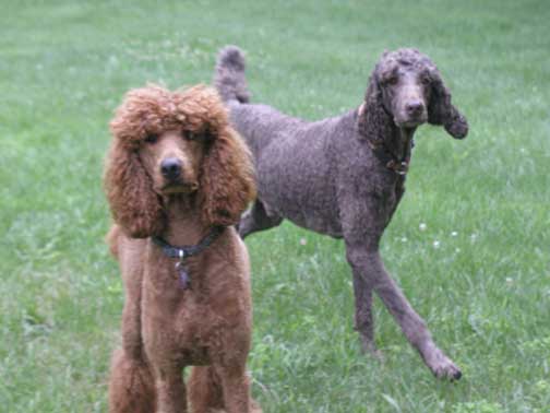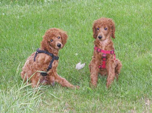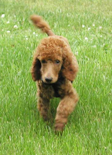Red Standard Poodle Fire, named after Fire Quormosto in my fantasy novel. A character full of grace and adventure. Fire and her sister Spirit are quite the pair, definitely the holding red highly desired color and we have done our best to test and assure the healthy future of the holding red, for structure, hips, and all other tests needed.