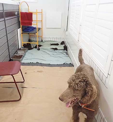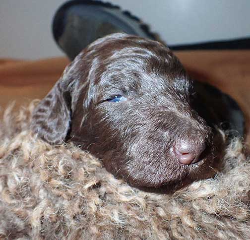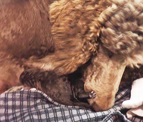 In raising Royal Brown Standard Poodles Geo x Bruno Puppies For Sale, I hope to share a bit of what I do to bring you your next pet :o) My bedroom must be heated to 80-90 degrees as pups just come from the womb and they have no way to monitor their bodies being just born, especially the first week Through the Woods of Mother Nature.