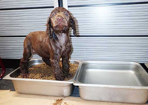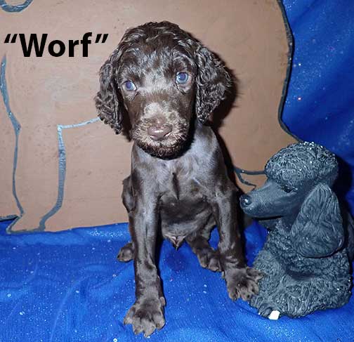 SOLD - "Worf now Jonas (Yo-nus)" - 8 wks old mc 5326; 9lbs 9oz; Brown. I get to go home to live with Tauren a relative from Tes's line to teach me his great manners of being a great Spoo, with AC > Cornwall, CT. He should be an estimated 55-65+ lbs as an adult :o) A Klingon warrior serving the Federation Starfleet. Worf's challenges in life got him to play in many seasons of Deep Space Nine.