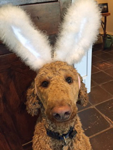 This is how we celebrate 2019 Easter....actually this is our human's idea of how cute we'd look with rabbit ears....seriously....we're hunting dogs...if we truly wanted bunny ears Daniel Dad and I could go to the woods and scare up our own lagamorphs...humans - what goes on in their heads ;-)