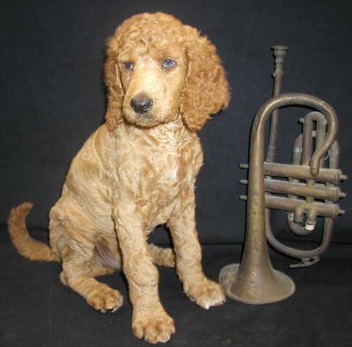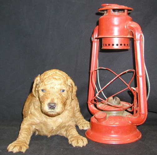 SOLD "Drummer Boy (Daemon)" solid apricot male mc 3822; 7 wks 10.8 lbs. I've been chosen and going to head home to SE > Sudbury, MA. Drummer Boy was the name given to the many young boys picking up the beat for the men in the Am. Revolution. I have a black nose. Tes' has added a go-tee to set me apart :o)