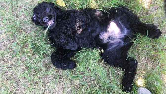 Mom brushed us again. Must correct the problem – quick, roll in the driest grass you can find!