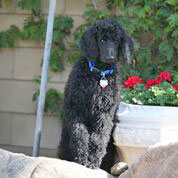 Royal Standard Poodle Black Sherlock at home in Vancouver, BC. Parents Black Zeddy x Brown Bruno born 09/22/15