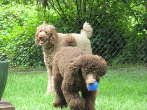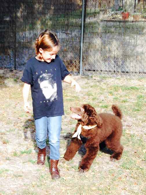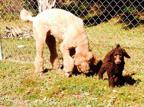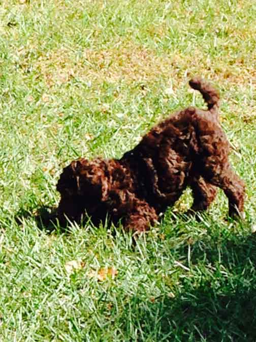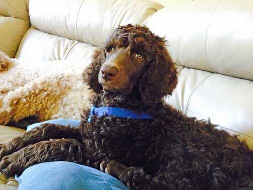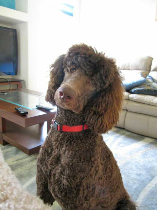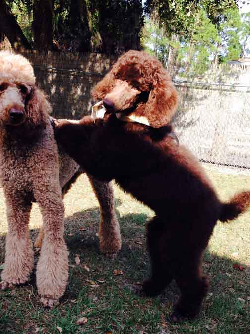 Royal Standard Poodle Brown Briggs at home in North Port, FL. Parents Black Zeddy x Brown Bruno born 09/18/14