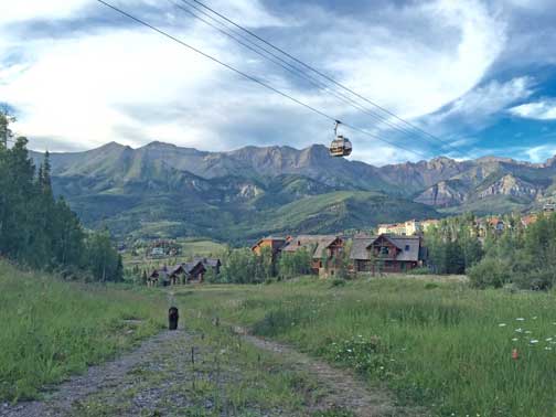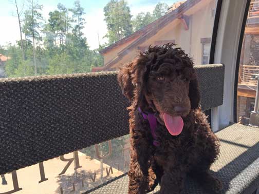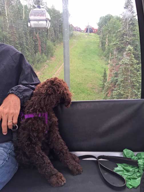 Her owners share: "We ride the gondola here to get from Mountain Village to Telluride, Harper is getting used to it and loves to look out of the window and let the other people pet her."