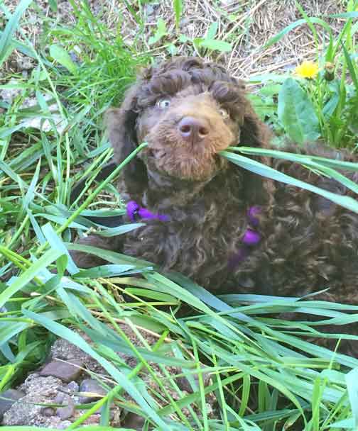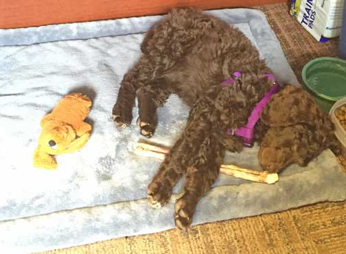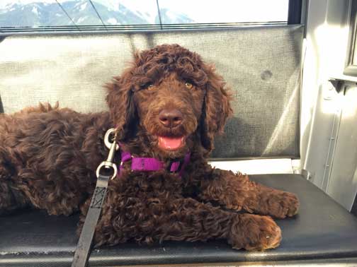 Royal Brown Standard Poodle Harper Lee at home in Tellride, CO. Parents Black Zeddy x Brown Bruno born 04/09/15.