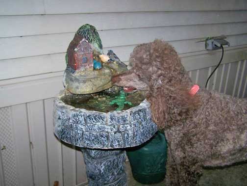 Royal Standard Poodle Brown Maggie at home in N. Liberty, IN.