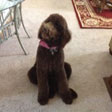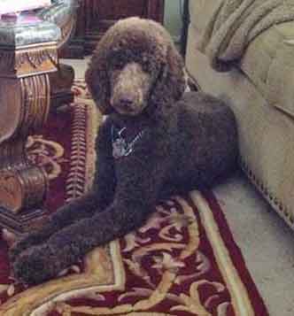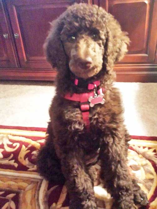 Royal Standard Poodle Brown Tessa at home in Beavercreek, OH. Parents Black Zeddy x Brown Bruno born 03/09/14 - her owners share, "Tessa is a complete joy. She just loves being with us and playing ball. She loves her toy duck. She is the center of attention anywhere we take her. She is in her second stage obedience class and is doing very well, until she gets bored. Thank you for the opportunity to add Tessa to our family she is magnificent."
