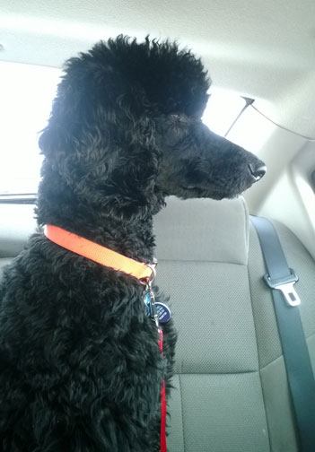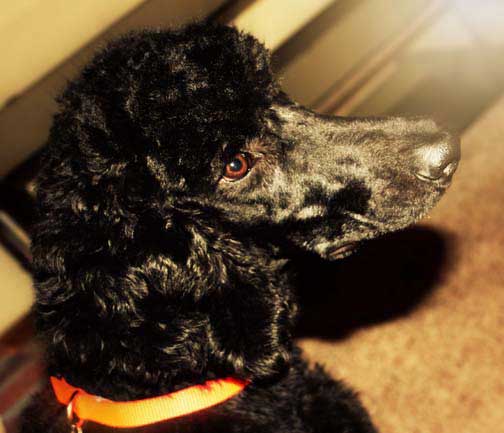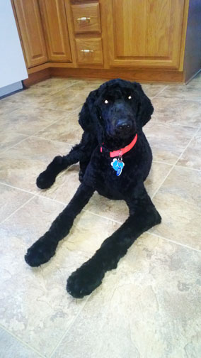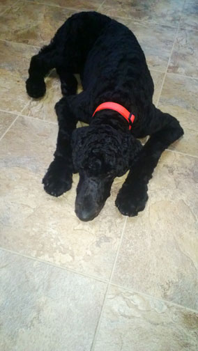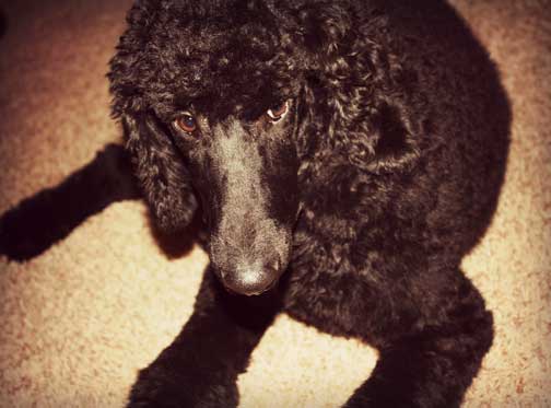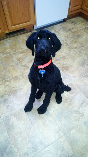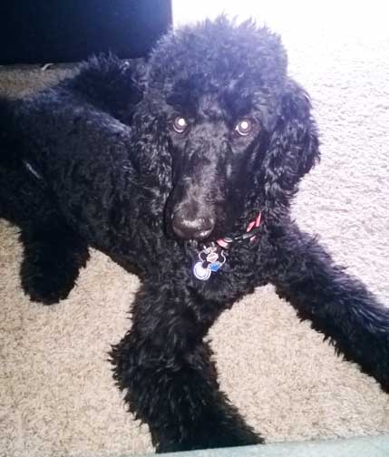 Royal Standard Poodles - Black Apple-Jax at home in St.Paul, MN. Parents Cleopatra x Daniel. I sit like such a good boy :0)