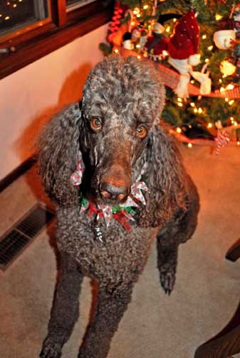 "The bone I found in my stocking this year was yummy! My cutest face I can make to thank you, Tes!" :0)