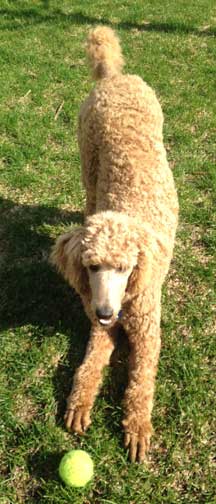 Royal Standard Poodles - Cream Izzy stayed with Tes 6 or 7 months after being born. Izzy now leaves in Southern Minnesota with her new family. They are enjoying her so much! Informing Tes that she is "growing big and sweet as can be." She is full of energy and has a personality that demonstrates it. Izzy's owners shares that she is in her third week of puppy class which she is doing excellent in. She's thriving and enjoying her backyard and walks. She recently meet some family and they "run, run, run, in the yard".