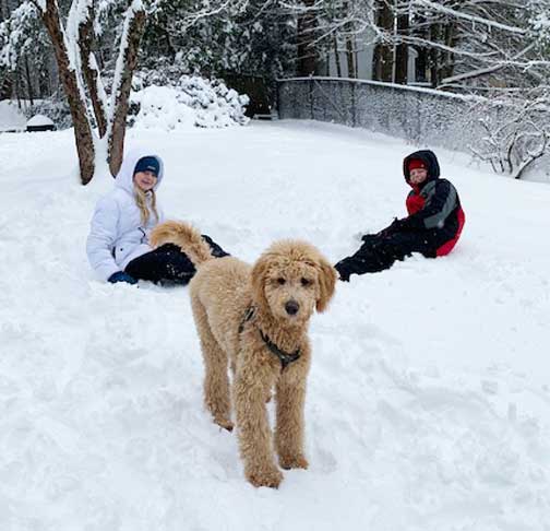 December 2019: Enjoyed our first snowfall the other day. Daemon’s a natural in the snow (and the sand!! Hahaha!)