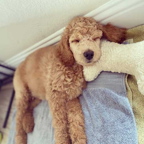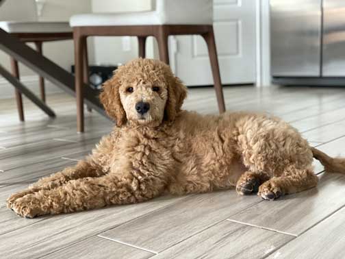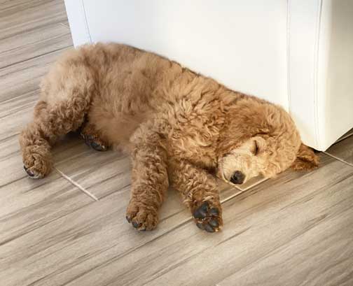 last updated 5/3/20 Sky Red Standard Poodle at home with KDD in Spring, TX. Parents Apricot Enya x Red Dash born 2019.