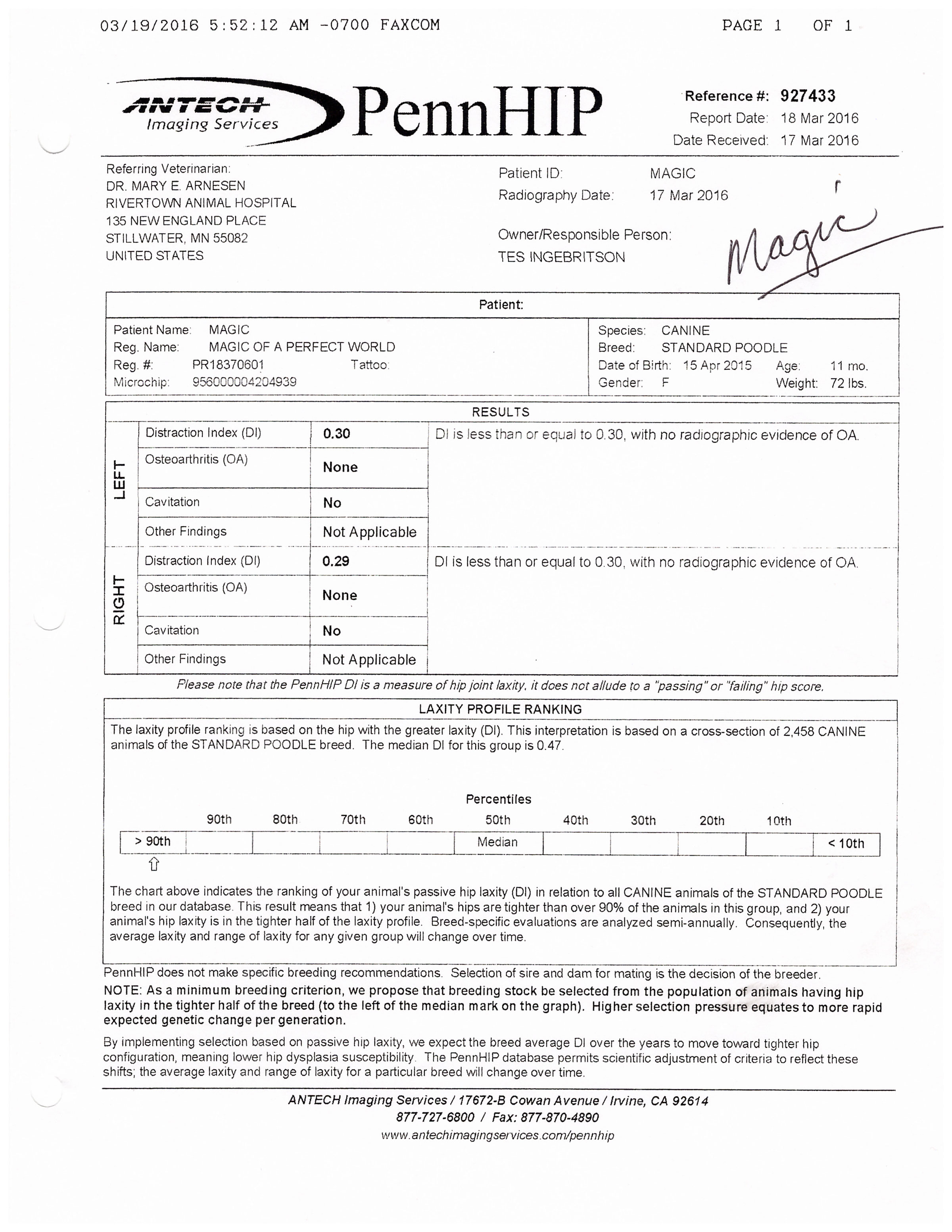 Standard Poodle hip rating-Vyke; There are many considerations to review when looking at a test...whether understanding PennHip or OFA...