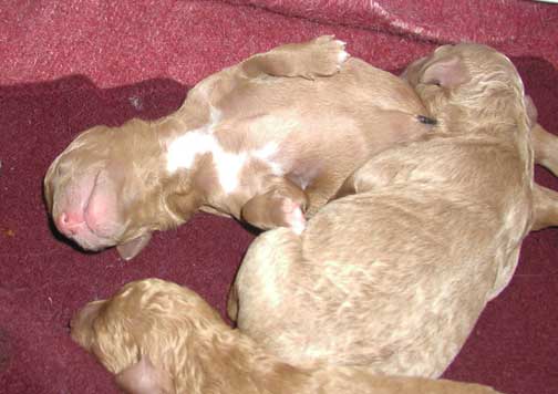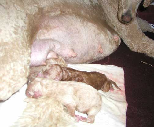 In raising Standard Poodles ExD Puppies For Sale, I hope to share a bit of what I do to bring you your next pet :o) My bedroom must be heated to 80-90 degrees as pups just come from the womb and they have no way to monitor their bodies being just born, especially the first week Through the Woods of Mother Nature.