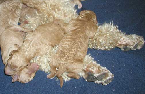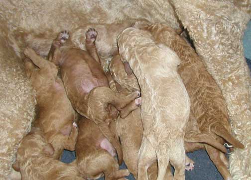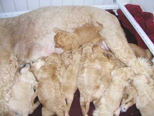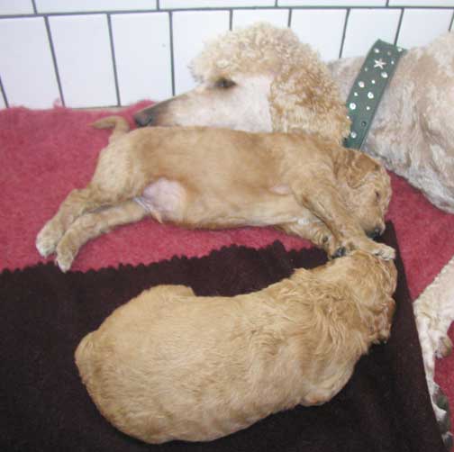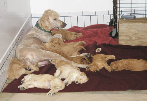 A range of color from red to cream, from Royal to Standard Poodles 2020 ExD. Having lots of room for momma to circle around us is important. Some of us nurse, some of us zzzzz....