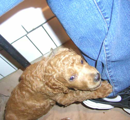 SOLD - "Cookie > now Ginger" Apricot Female mc 4011; 9wks 12 lbs I'll be a "Standard" :o) Tiny white on back right paw. I'm heading home with - WNM > Horseshoe Bay, TX :o)