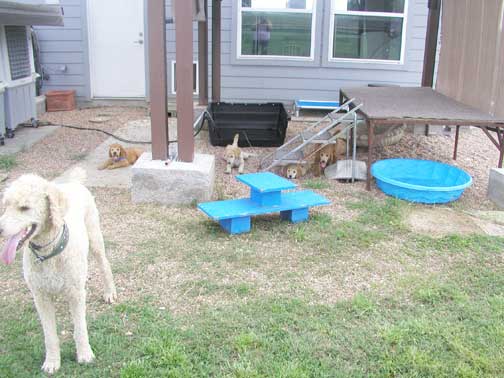 Tes has moved us Standard Poodles 2020 ExD to the Wing. LOTS of sunlight, and a LOT more room...although we only want to stay on the wool blankets we're so use to for now...then we quickly see there's more room, and start to REACH into the new space we have, learning to Potty on paper...learning to reach, Reach, REACH more and MORE as we grow...