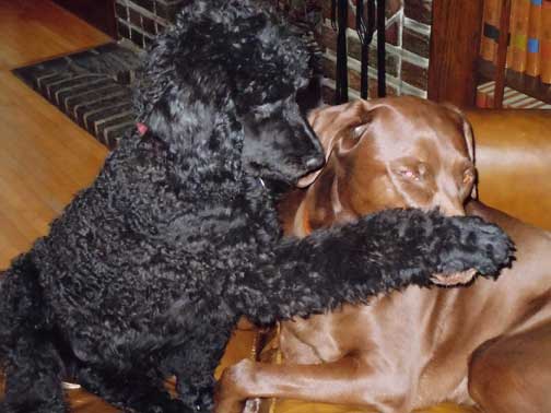 Fiends - give me your attention! I'm amazingly athletic my owner shares...I'm a Standard Poodle puppy and want to hunt ;0) Come on!!!
